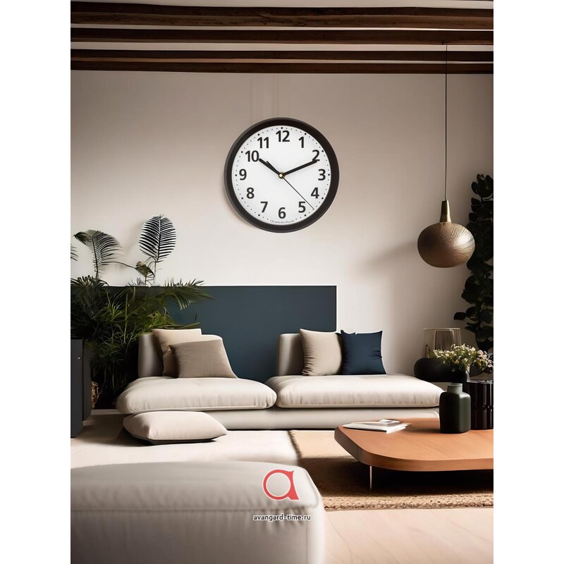 Эти классические часы имеют круглую форму и черный корпус, который идеально дополняется белым циферблатом с арабскими цифрами. Они подойдут как для кухни, так и для гостиной, спальни или коридора, благодаря своему универсальному дизайну.