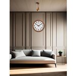Корпус часов выполнен из высококачественного пластика в томительном медном цвете, что придаёт изделию стильный и современный вид. Белый циферблат, украшенный арабскими цифрами, обеспечивает превосходную читаемость времени, а минеральное стекло защищает его от повреждений, сохраняя первозданный вид на долгое время.