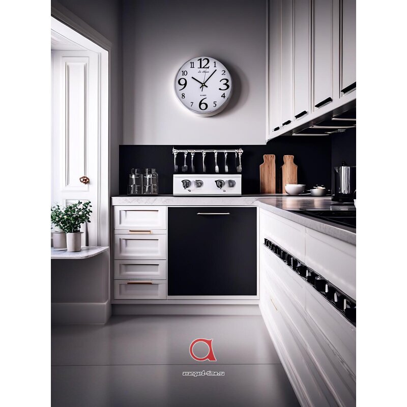Их классическая круглая форма и универсальный белый цвет корпуса и циферблата подойдут для любого помещения. Арабские цифры на циферблате обеспечат легкость чтения времени как взрослым, так и детям.