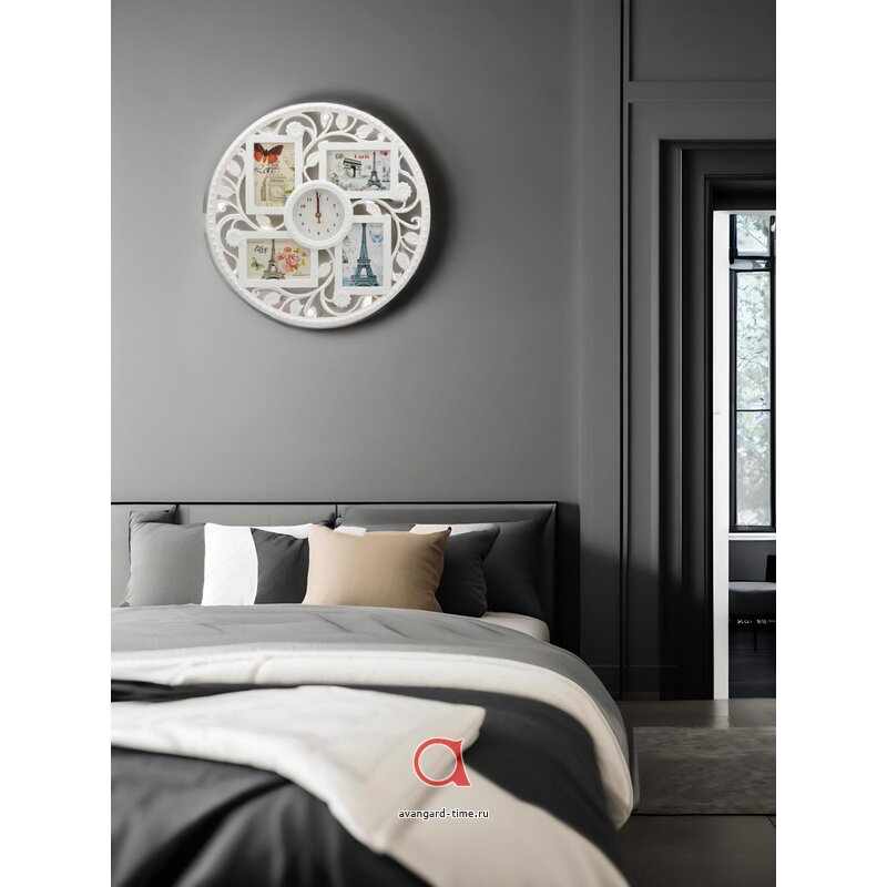 Эти часы имеют круглую форму и белую мультирамку, что делает их универсальными и легко вписывающимися в любой дизайн помещения. Белый цвет корпуса и циферблата создают светлый и воздушный интерьер, подходящий для взрослой аудитории.