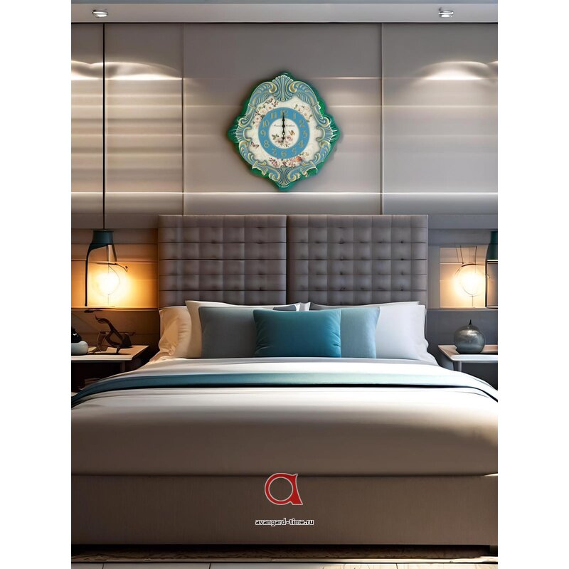 Представляем вам уникальные настенные часы Михаила Москвина из коллекции Барокко 7-2. Эти часы поразят вас своей нестандартной формой и изысканным дизайном. Корпус часов выполнен в голубом цвете, а циферблат имеет приятный бежевый оттенок с арабскими цифрами.