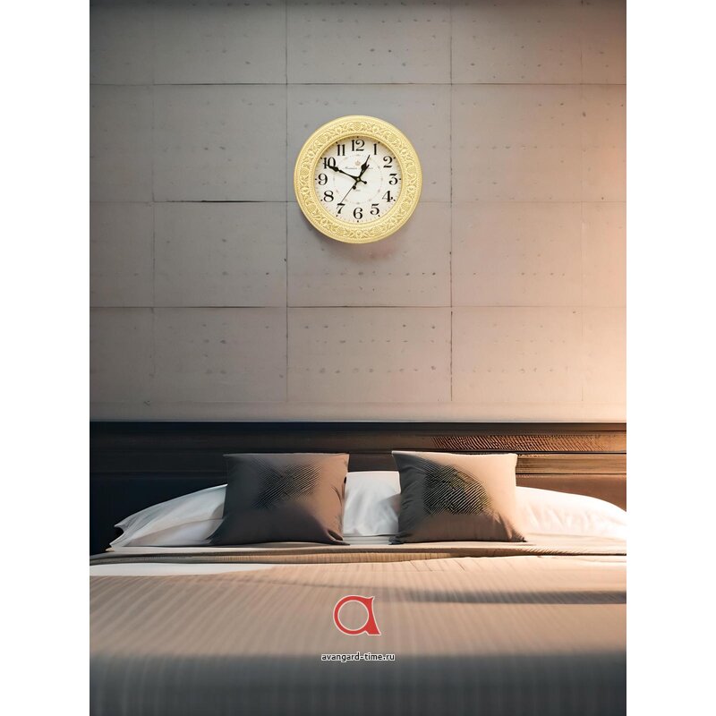 Кварцевый механизм с плавным ходом обеспечивает высокую точность, а минеральное стекло защищает циферблат от повреждений и загрязнений. Часы идеально подойдут для размещения в кухне, гостиной, спальне или коридоре, орнаментируя любое пространство и придавая ему завершённый вид.