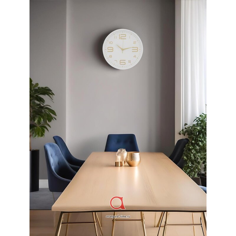Эти часы сочетают в себе классический стиль и функциональность. Их белый круглый корпус и циферблат с арабскими цифрами прекрасно дополнят любое помещение.