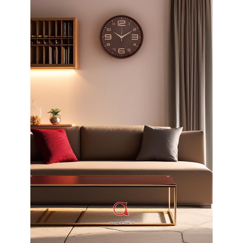 На коричневом циферблате удобно размещены арабские цифры, что делает чтение времени простым и легким. Такие часы станут не только функциональным элементом, но и стильным украшением вашего дома. Кварцевая механика гарантирует плавный ход и надежность в работе, а срок гарантии в один год обеспечивает дополнительное спокойствие.
