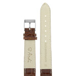 Ширина ремешка составляет 18 мм, что делает его универсальным для различных стилей одежды. Коричневый цвет материала придаёт ему элегантный и солидный вид, а лаковая отделка с эффектом крокодиловой кожи добавляет изюминку и характер. Застёжка из хромированного металла завершает образ, делая его ещё более привлекательным и современным.