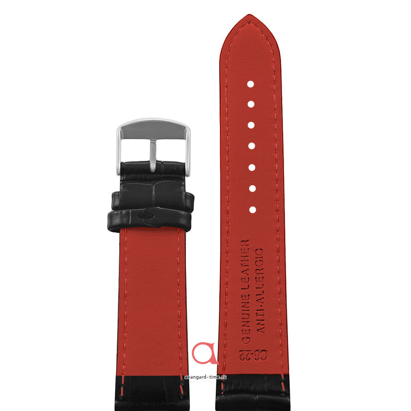 Ремешок изготовлен из натуральной кожи, что обеспечивает не только премиальный внешний вид, но и долговечность в использовании. Мягкий и приятный на ощупь, он обеспечит комфорт даже при длительном ношении. Черный цвет основного полотна добавляет строгого стиля, а яркие красные детали придают ему неповторимый характер.