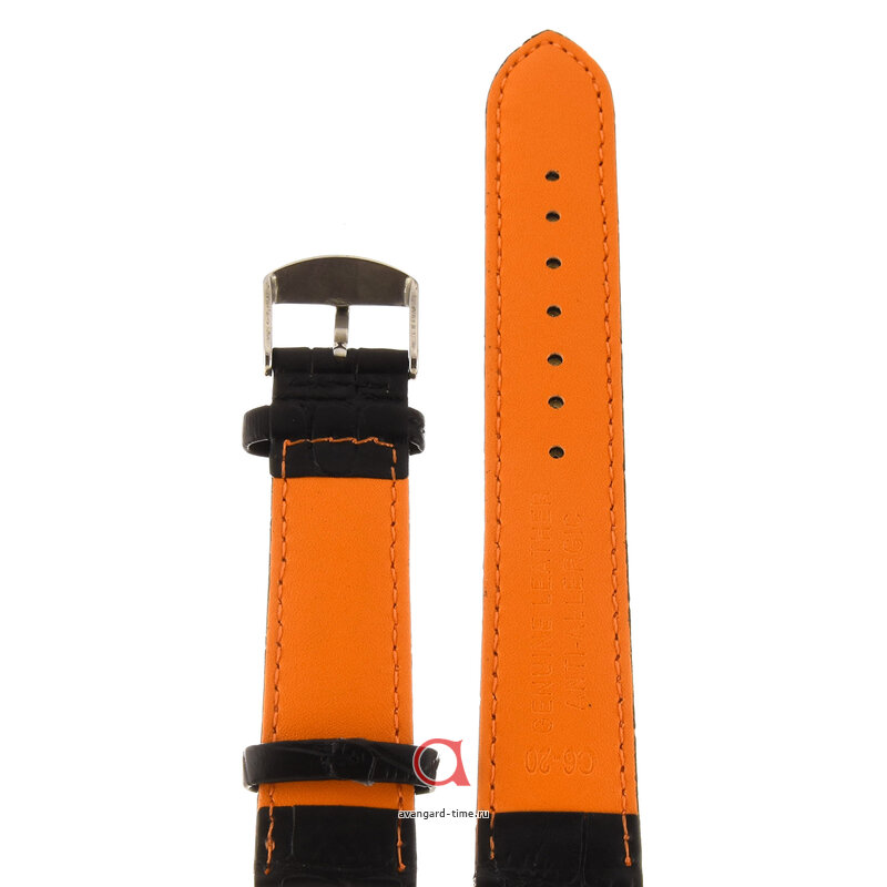 Ремешок выполнен из натуральной кожи, что гарантирует не только долговечность, но и комфорт в носке. Мягкая текстура кожи приятно ощущается на запястье, а стильный оранжевый акцент придаёт изделию уникальный облик, который не останется незамеченным. Элегантная хромированная застежка обеспечивает надежную фиксацию, добавляя нотку изысканности вашему образу.
