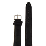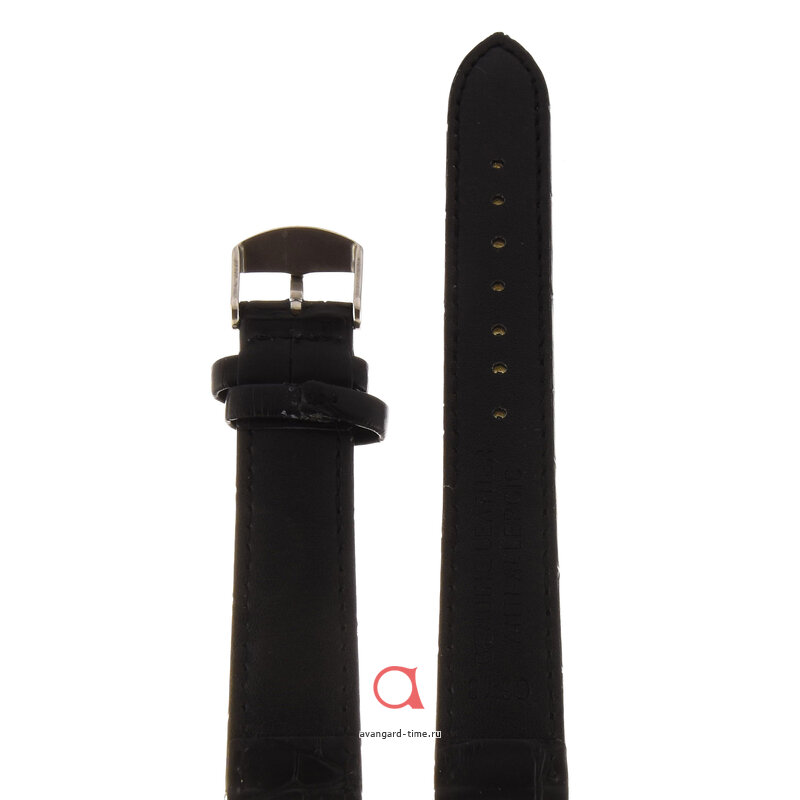 Изготовленный из натуральной кожи и имеющий ширину 18 мм, этот черно-черный ремешок добавит утонченность вашему образу. Хромированная застежка надежно фиксирует часы на вашем запястье, а длина ремешка в 200 мм подойдет практически любому размеру руки.