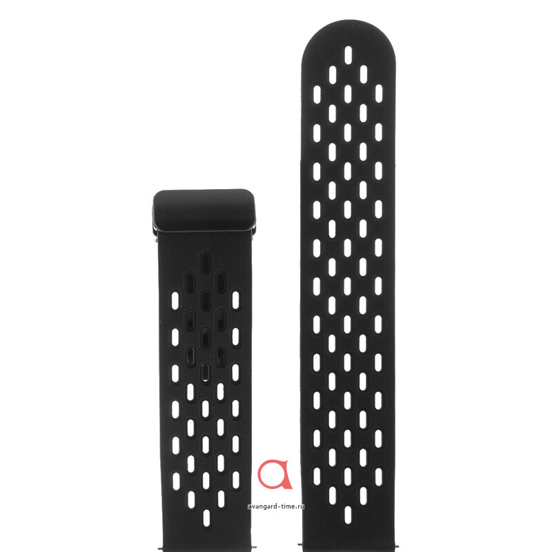 Этот силиконовый ремешок имеет ширину 22 мм и длину 225 мм, что делает его универсальным и подходящим для большинства часов. Черный цвет застежки и материала придает ему элегантный и строгий вид.