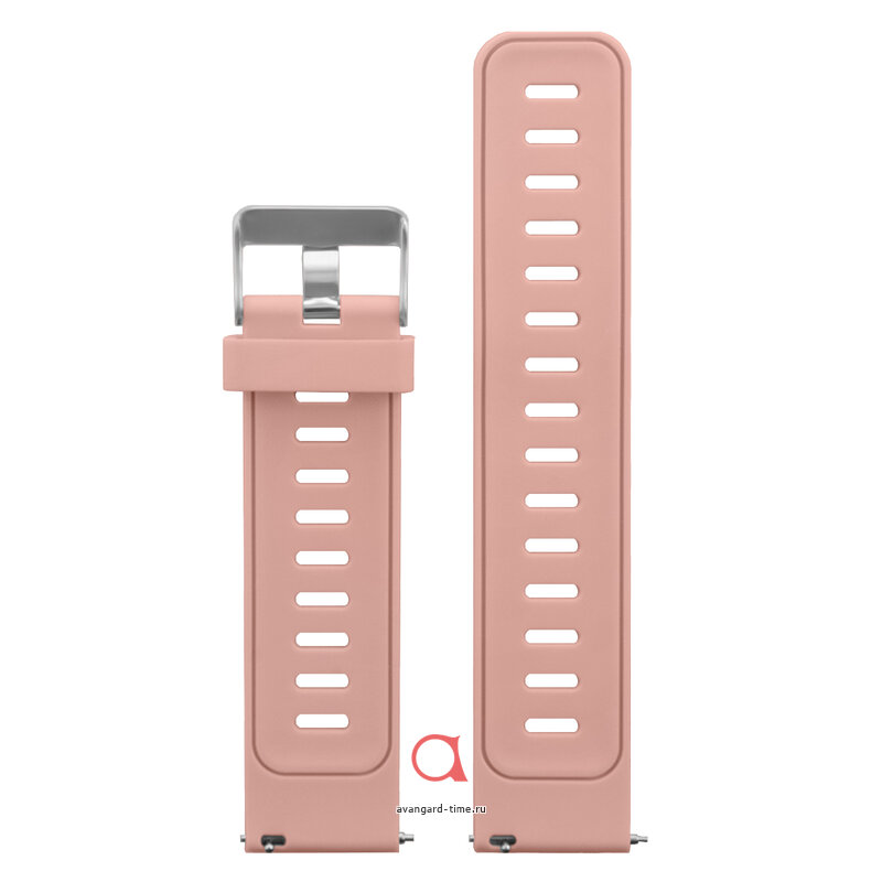 Изготовленный из высококачественного силикона, ремешок отличается эластичностью и долговечностью, что гарантирует ему стойкость к ежедневному износу. Его светло-розовый цвет добавляет нотку свежести и оригинальности, делая ваш образ более ярким и современным. А серебристая застёжка придаёт элегантный акцент, подчеркивая стильный дизайн.
