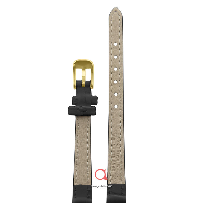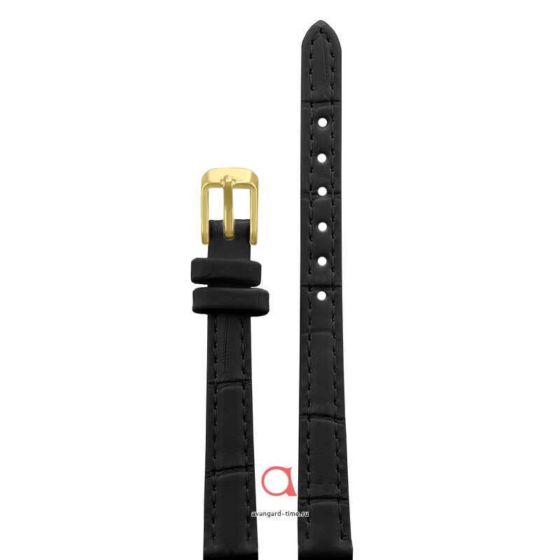 Ремешок выполнен из натуральной кожи, что обеспечивает не только комфорт при носке, но и долговечность. Благодаря ширине 10 мм, он гармонично смотрится на запястье, идеально подходя для женских часов. Черный цвет добавляет строгости, а золотая застежка создает эффектный контраст, придавая изделию роскошный вид.