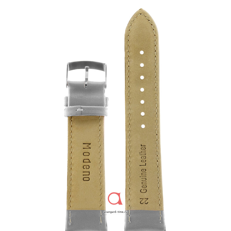Ищете стильный аксессуар для своего часов? Предлагаем вам модный ремешок Modeno шириной 22 мм в сером цвете с элегантной серебряной застежкой! Изготовлен из высококачественной натуральной кожи, этот ремешок не только привлекает внимание своим дизайном, но и отлично подходит для повседневного использования.