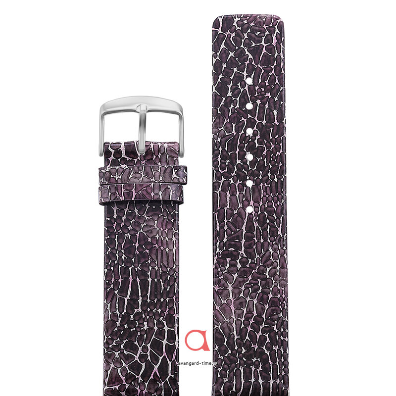 Ремешок выполнен из натуральной кожи, что обеспечивает комфорт при ношении и долговечность изделия. Элегантный фиолетовый цвет с оригинальным змеиним узором добавляет изысканности и делает его заметным акцентом в вашем образе. Хромированная застёжка не только надежно фиксирует ремешок, но и придаёт ему дополнительный блеск.
