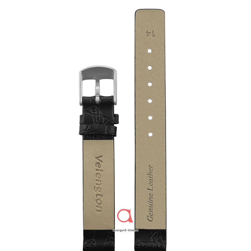 Позвольте представить вам ремешок для часов Velengton – идеальное сочетание стиля и комфорта. Этот ремешок шириной 14 мм изготовлен из натуральной кожи, что обеспечивает не только элегантный внешний вид, но и долговечность. Черный цвет с эффектом крокодиловой кожи добавляет изысканности и деликатности, что делает его превосходным дополнением к любому образу.