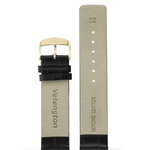 Ремешок шириной 22 мм выполнен из натуральной кожи высокого качества, что обеспечивает не только долговечность, но и комфорт в носке. Черный цвет товара делает его универсальным, идеально сочетающимся как с деловым, так и с повседневным стилем. Золотая застёжка придаёт аксессуару изысканный акцент и добавляет нотку элегантности, что особенно подчеркивает ваш статус и стиль.
