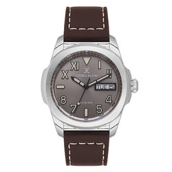 Часы имеют аналоговый способ отображения времени и оформлены в стильном круглом корпусе темно-серого цвета. Их изящный вид подчеркивается нержавеющей стальной браслеткой такого же цвета, что придает изделию респектабельный и мужественный облик. Арабские цифры на циферблате делают чтение времени легким и удобным, что особенно важно в повседневной суете.