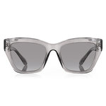 Серый цвет оправы элегантно дополняется черными линзами, обеспечивающими максимальную защиту от ультрафиолетовых лучей. Ширина линз составляет 52 мм, а ширина носового моста — 18 мм, что гарантирует идеальное прилегание и комфорт при длительном ношении. Длина дужки 145 мм позволяет очкам плотно сидеть на голове, не вызывая дискомфорта.