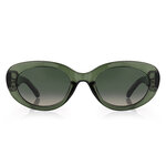 Их овальная форма оправы и ободковая конструкция создают элегантный силуэт, который одновременно подчеркивает индивидуальность и придает уверенный вид. Пластиковая оправа обеспечивает легкость и комфорт при длительном ношении, что особенно важно в активные солнечные дни. Зеленый цвет оправы прекрасно сочетается с градиентными линзами, усиливая общую гармонию образа.